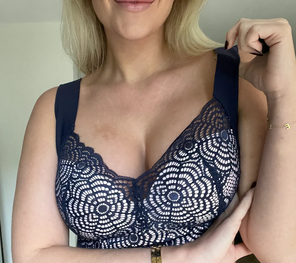 Wij begrijpen dat de juiste bh het verschil kan maken tussen een ongemakkelijke dag en een zelfverzekerde uitstraling. Onze bh is ontworpen om al je zorgen over hangende borsten, snijdende bandjes en pijnlijke bovenrug of schouders weg te nemen. Met geavanceerde rug- en borstondersteuning lift deze bh je borsten subtiel maar effectief, waardoor ze op hun best uitzien. Het biedt een ongeëvenaarde balans tussen comfort en aantrekkelijkheid, zodat je je de hele dag door comfortabel en zelfverzekerd voelt.
